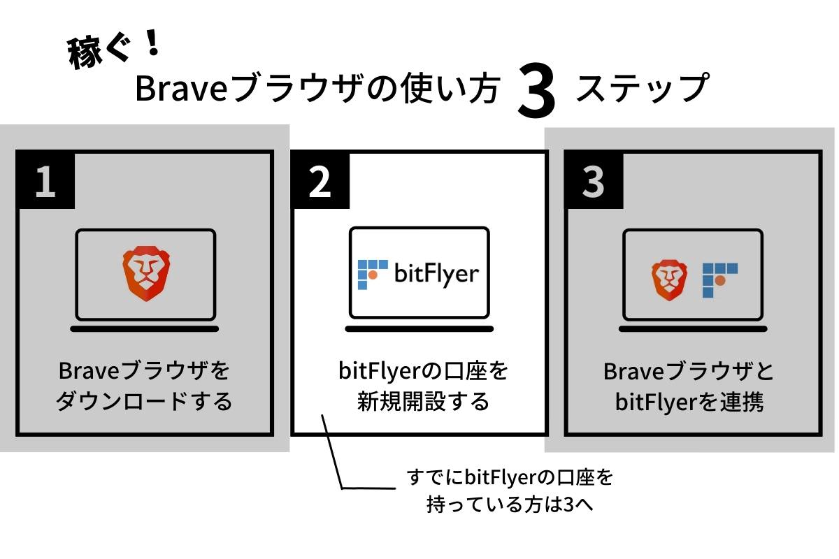 本記事では「Braveブラウザの使い方」→「BATの受け取り方」→「Braveブラウザで効率よく稼ぐコツ」の順に詳しく解説しています。