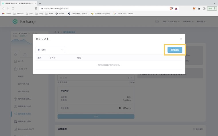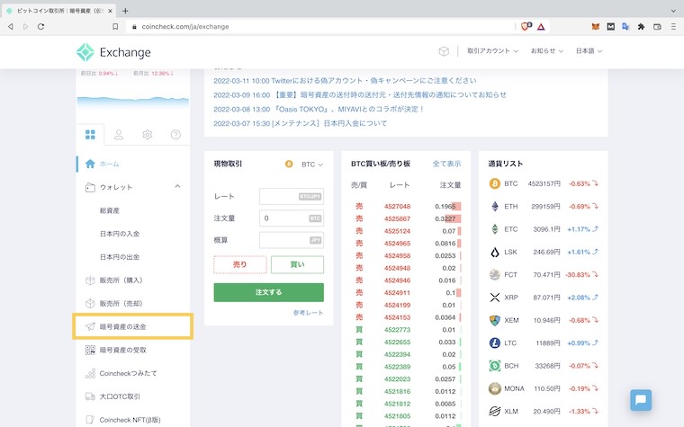 コインチェックからMetaMask(メタマスク)に送金する手順