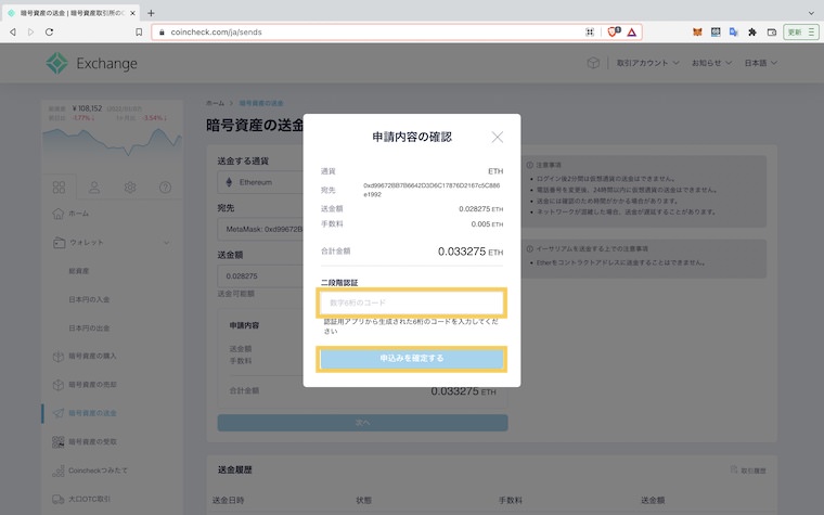 • CoincheckからMetaMaskに送金したい
