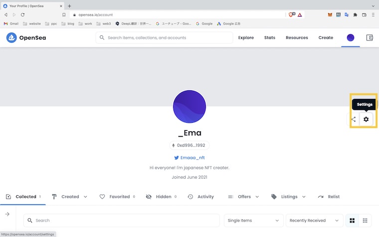 OpenSeaの登録と設定は以上です!