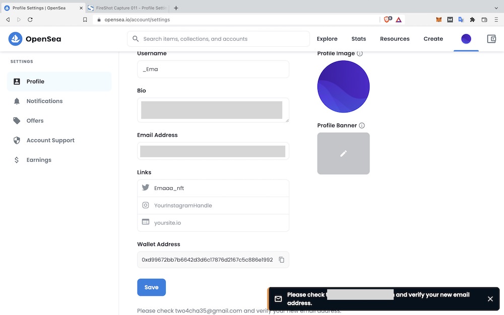 ウォレットアドレスは、そのままでOKです。すべて入力できたら「Save」をクリックします。
