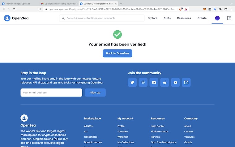 これで、OpenSeaのアカウント登録は完了です!
